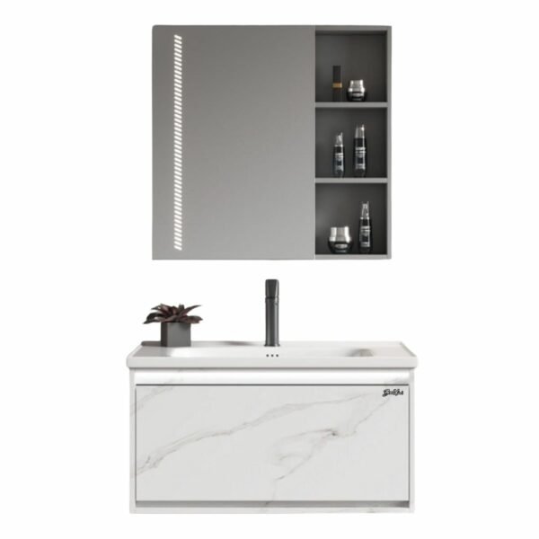 Meuble SDB Suspendu Lg 80Cm Prof 46Cm PVC Blanc Marbre Baldini Bl8242/80 Mr
